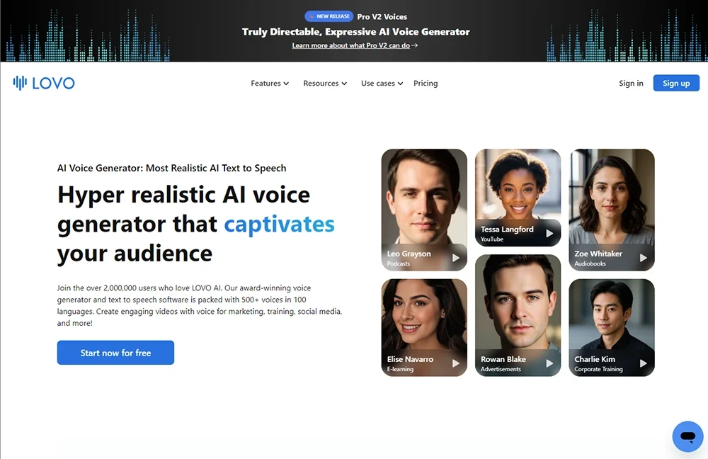 Vozes Pro V2: vozes ultra-realistas e direcionáveis com expressividade aprimorada.