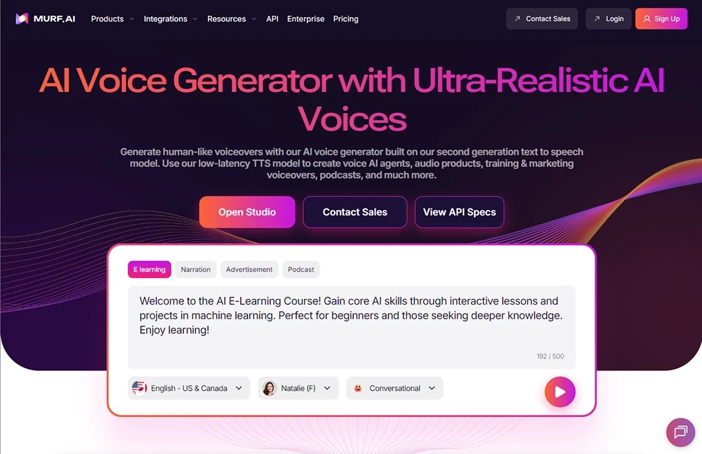 Murf.ai é uma plataforma projetada para quem quer criar narrações profissionais com facilidade. É utilizada por empresas, educadores e criadores digitais para dar voz a vídeos, apresentações e cursos, oferecendo mais de 200 vozes em 20 idiomas e sotaques.