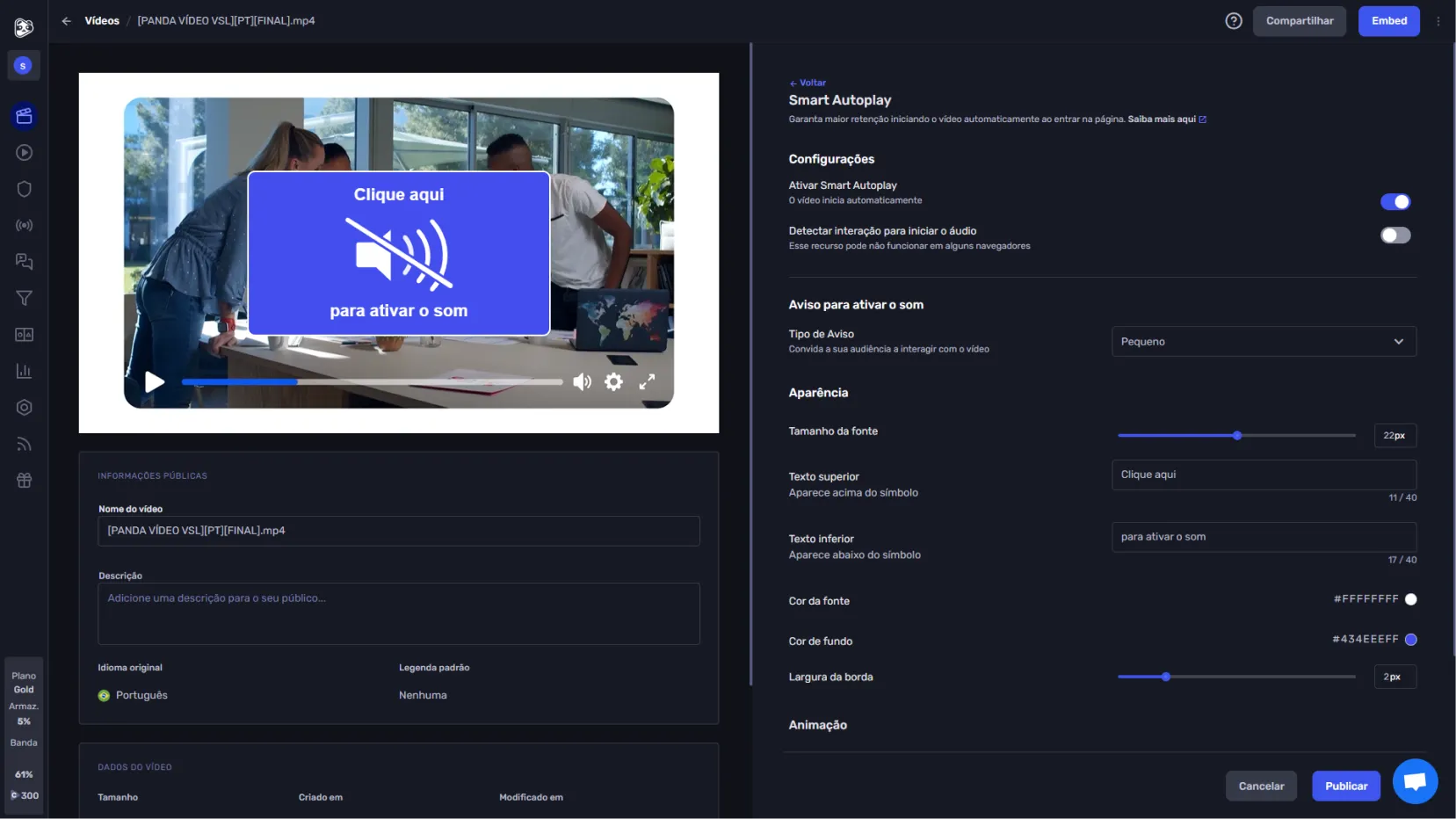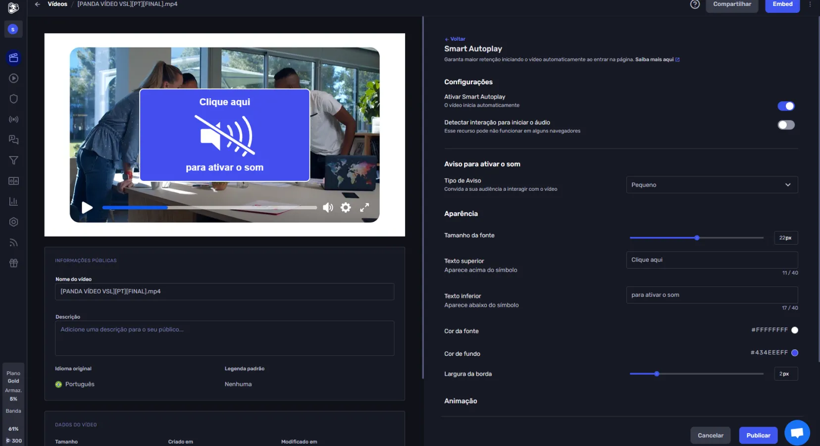 Ative o Smart Autoplay com um único clique — não é necessário editar o código da página ou modificar o vídeo.