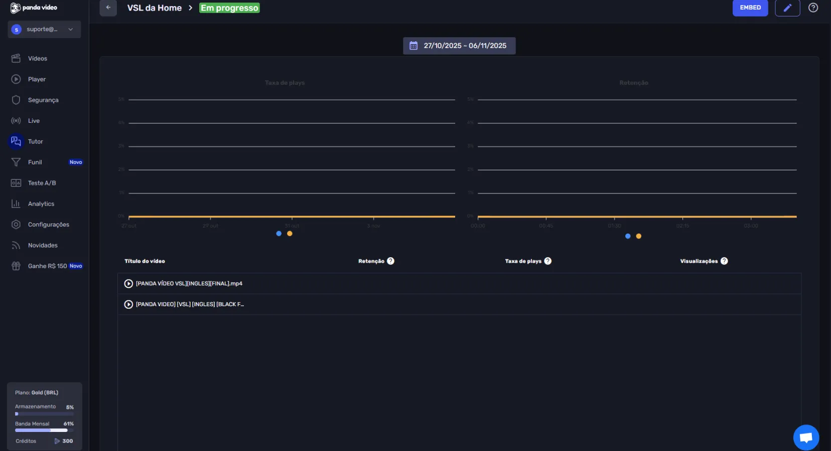 Vídeos hospedados na plataforma
