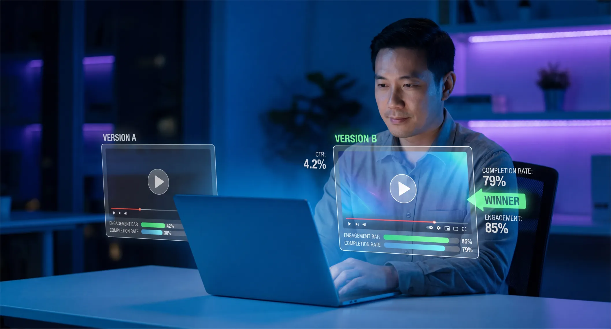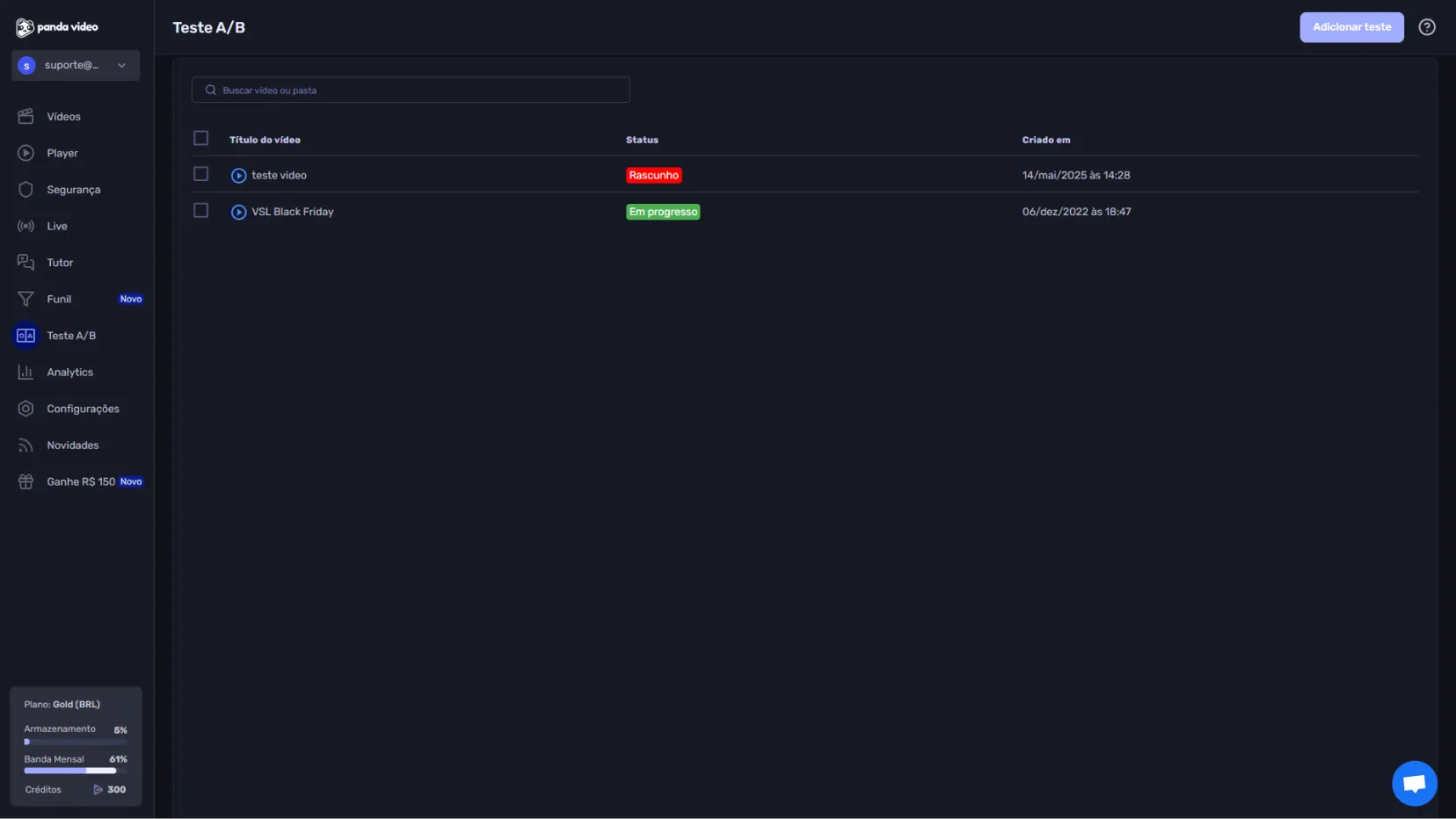 Teste diferentes versões do mesmo vídeo, como alterações de roteiro, CTAs ou edições de player.