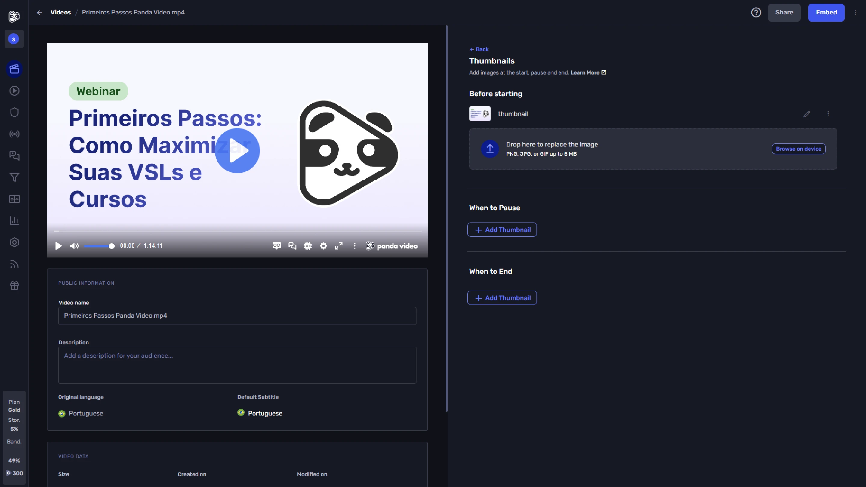 Defina miniaturas de início, pausa e fim para seus vídeos.