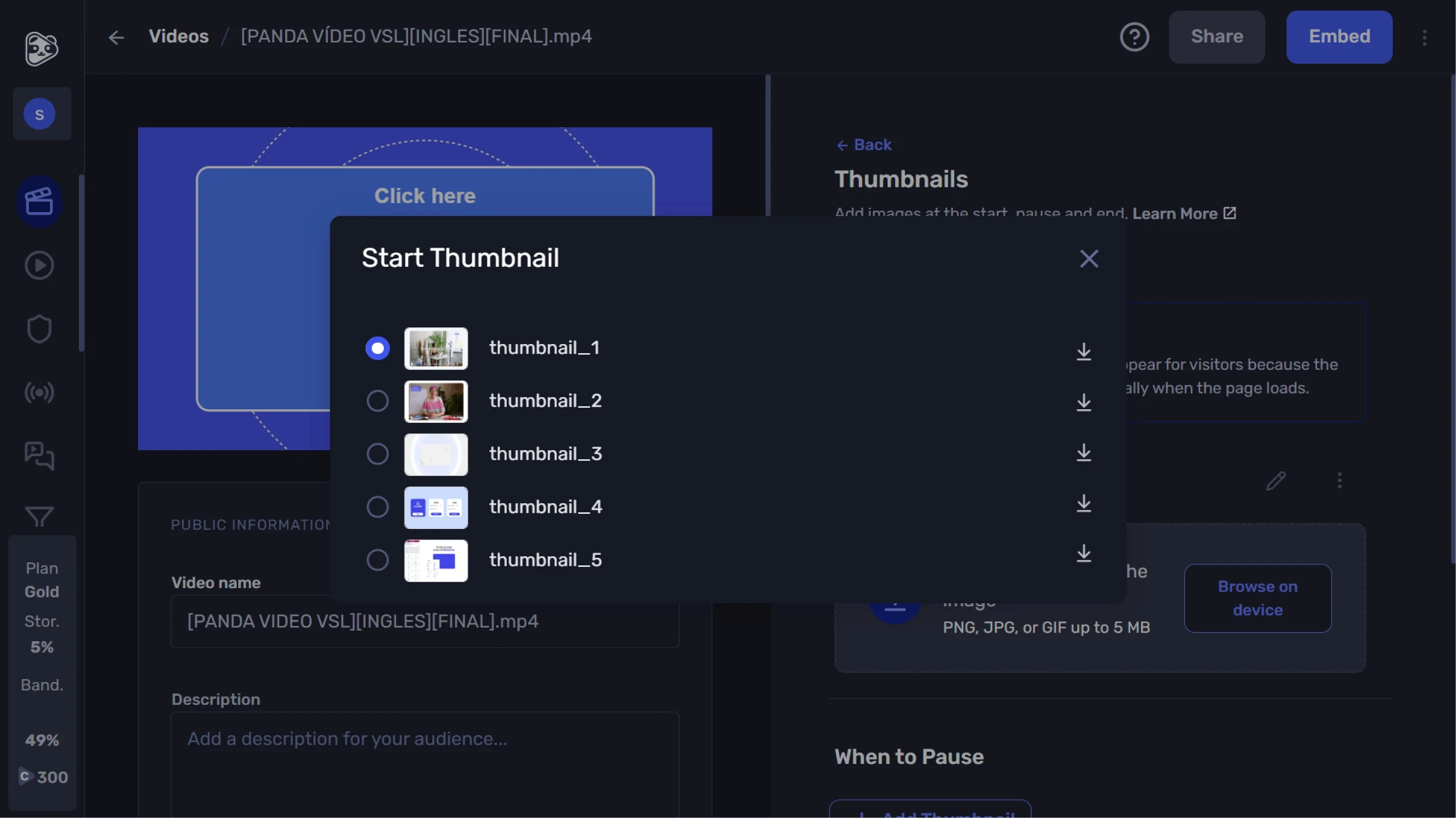 Escolha qual imagem aparece quando o vídeo está pausado.