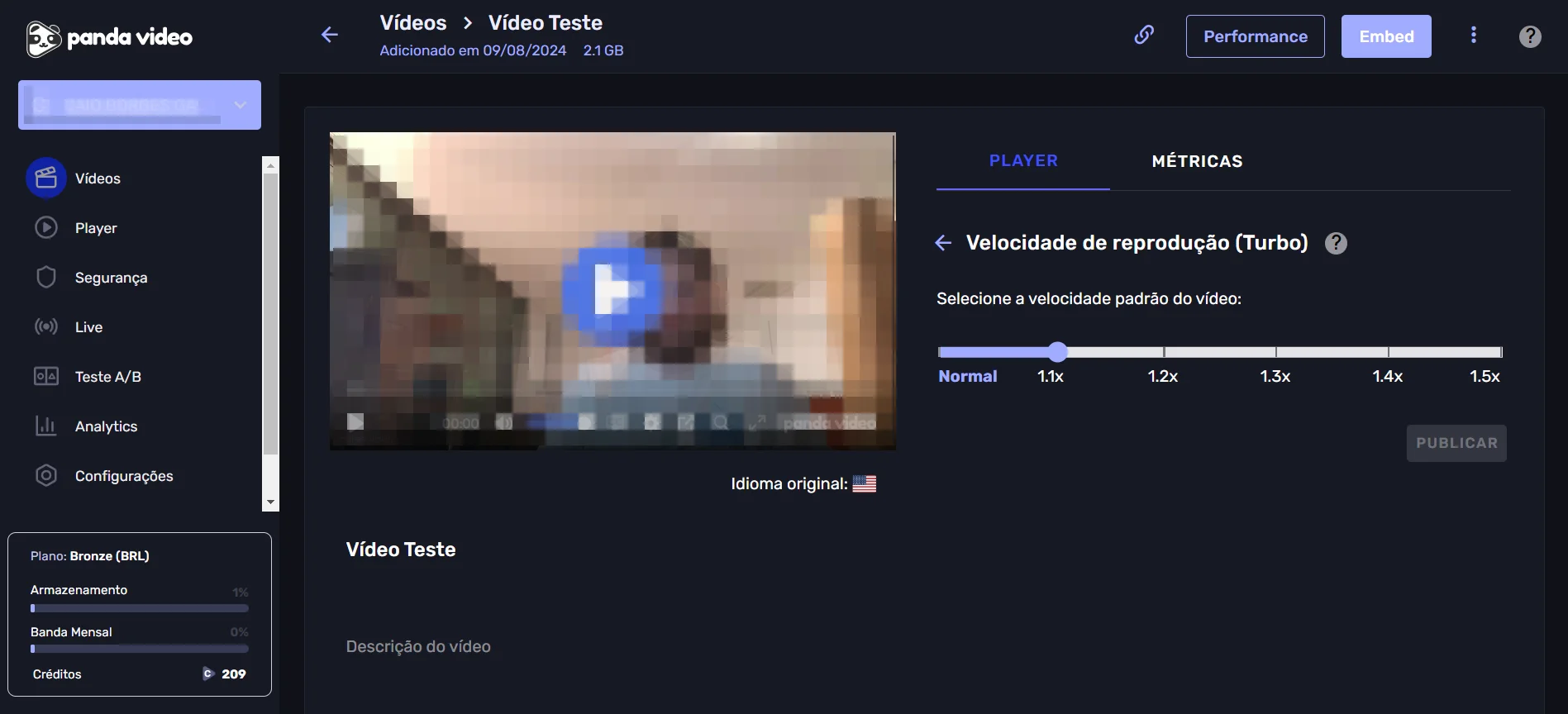 En Panda Video, puedes configurar tu VSL para que se reproduzca ligeramente más rápido que lo normal de forma predeterminada, sin distorsionar la calidad del audio ni la claridad del mensaje.