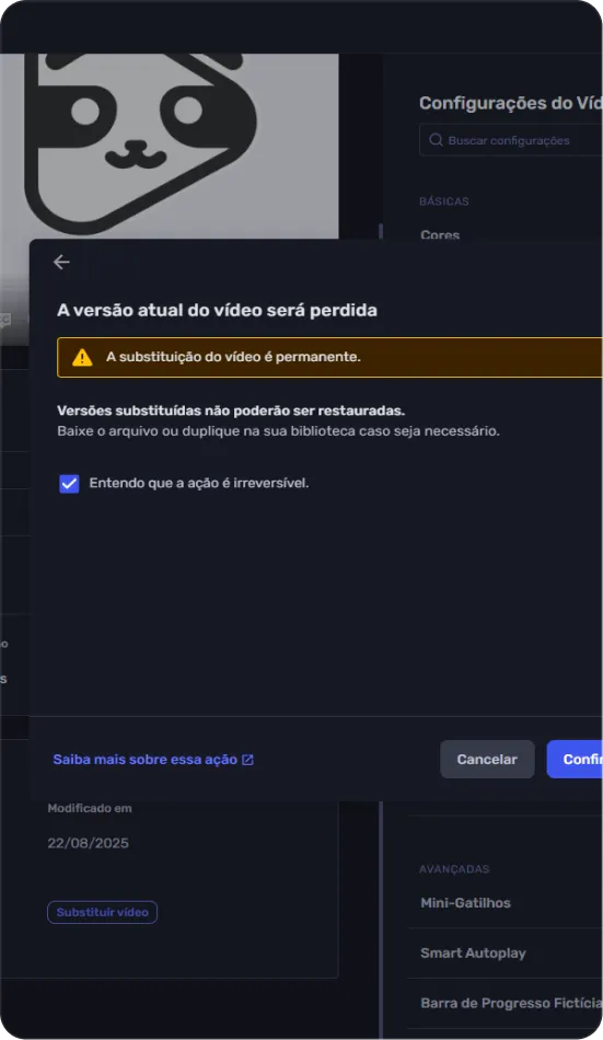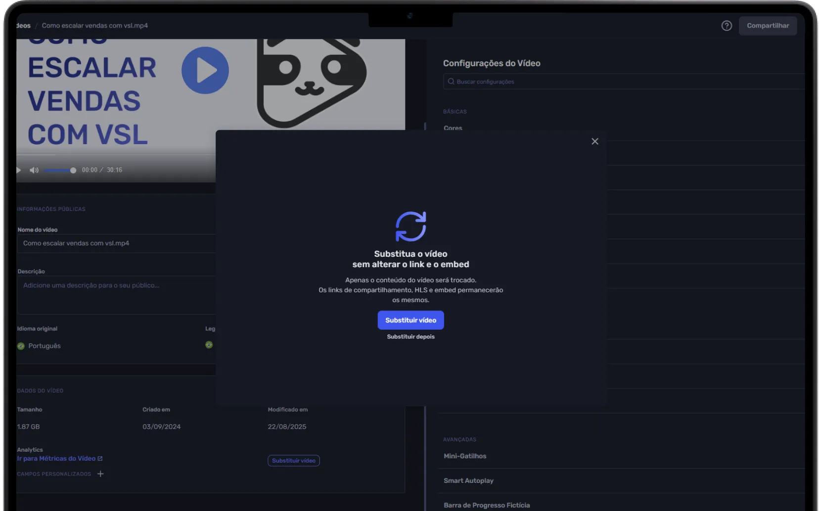 Actualiza cualquier video publicado sin cambiar el enlace o el código embebido en tus páginas.