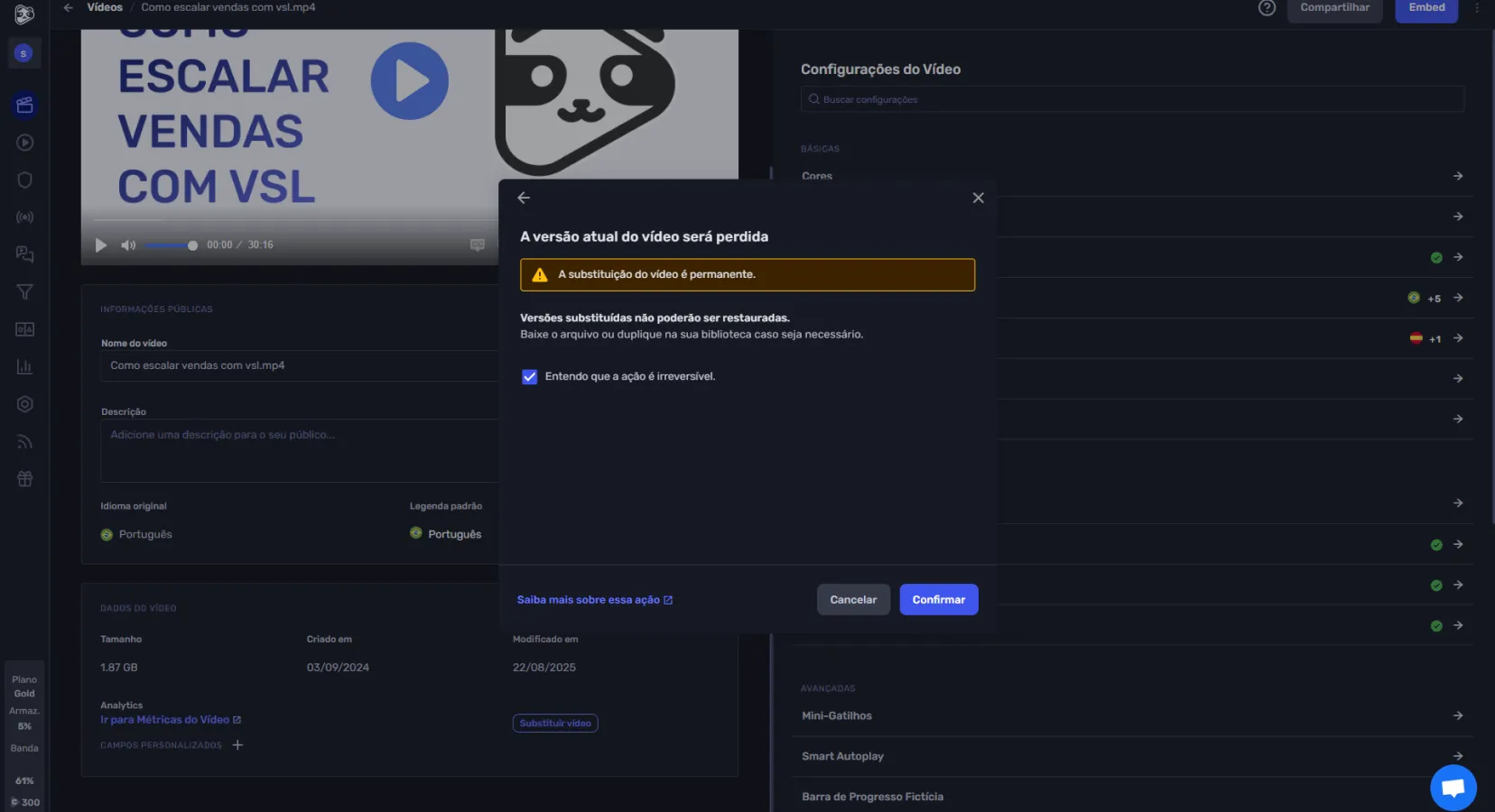 Durante el proceso de reemplazo, el video original permanece visible hasta que la nueva versión esté completamente procesada.