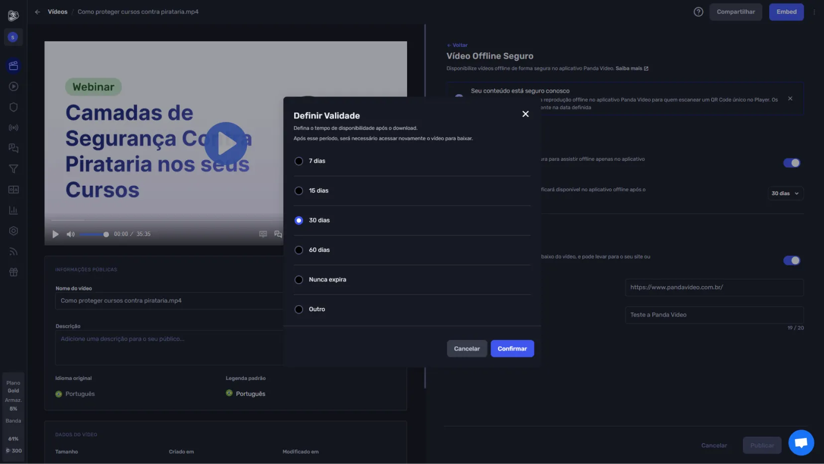 Elige cuánto tiempo puede estar disponible cada video para su visualización sin conexión.