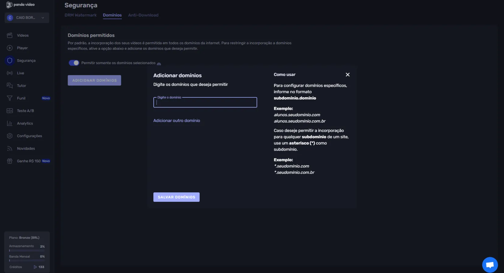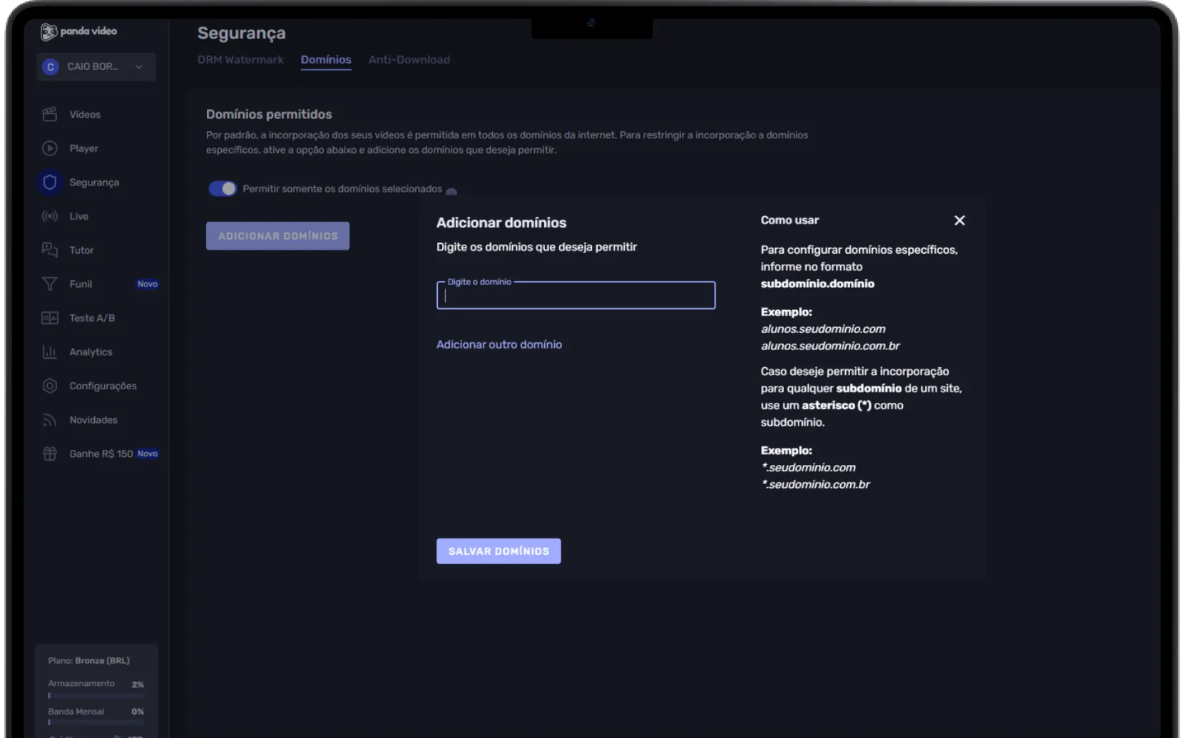 Enable allowed domains directly in Panda Video and maintain control even across multiple pages.