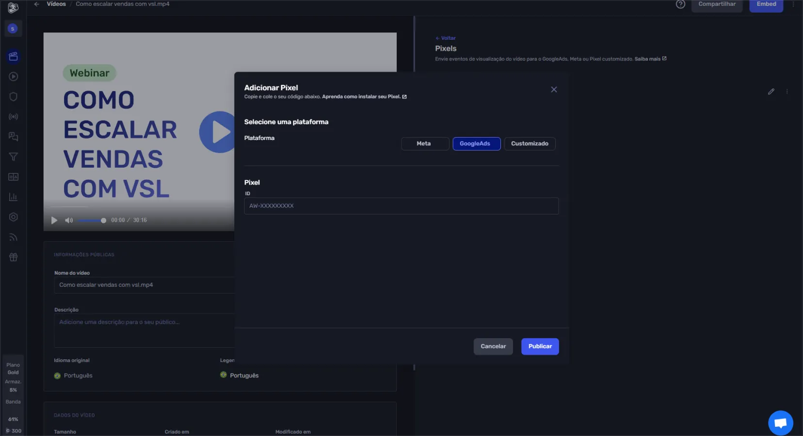 Just copy the pixel ID and paste it into the desired video. If needed, you can also configure custom pixels from other platforms.