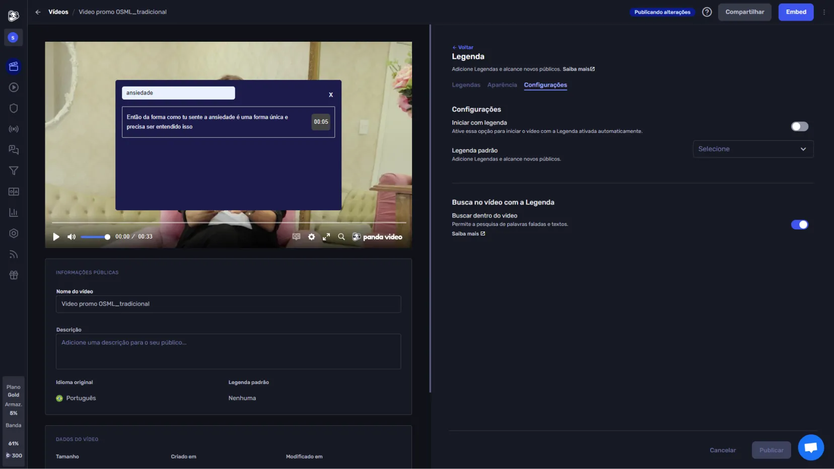 Search for keywords directly within the player.